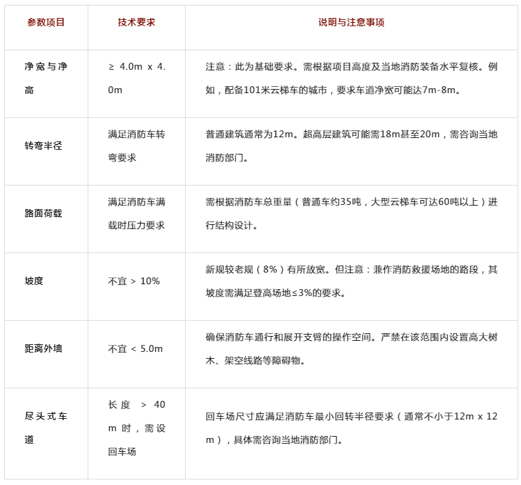 6.忽视当地消防装备:超高层项目未调研当地实际配备的消防车型号,导致车道宽度、转弯半径、荷载设计不足。