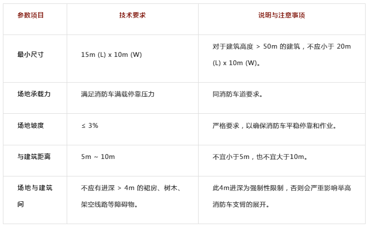 对于大体量多层建筑(如大型物流仓库、商场、体育馆等),规范虽未强制,但强烈建议在内部货运通道或广场上按登高场地要求进行设计,以备不时之需。